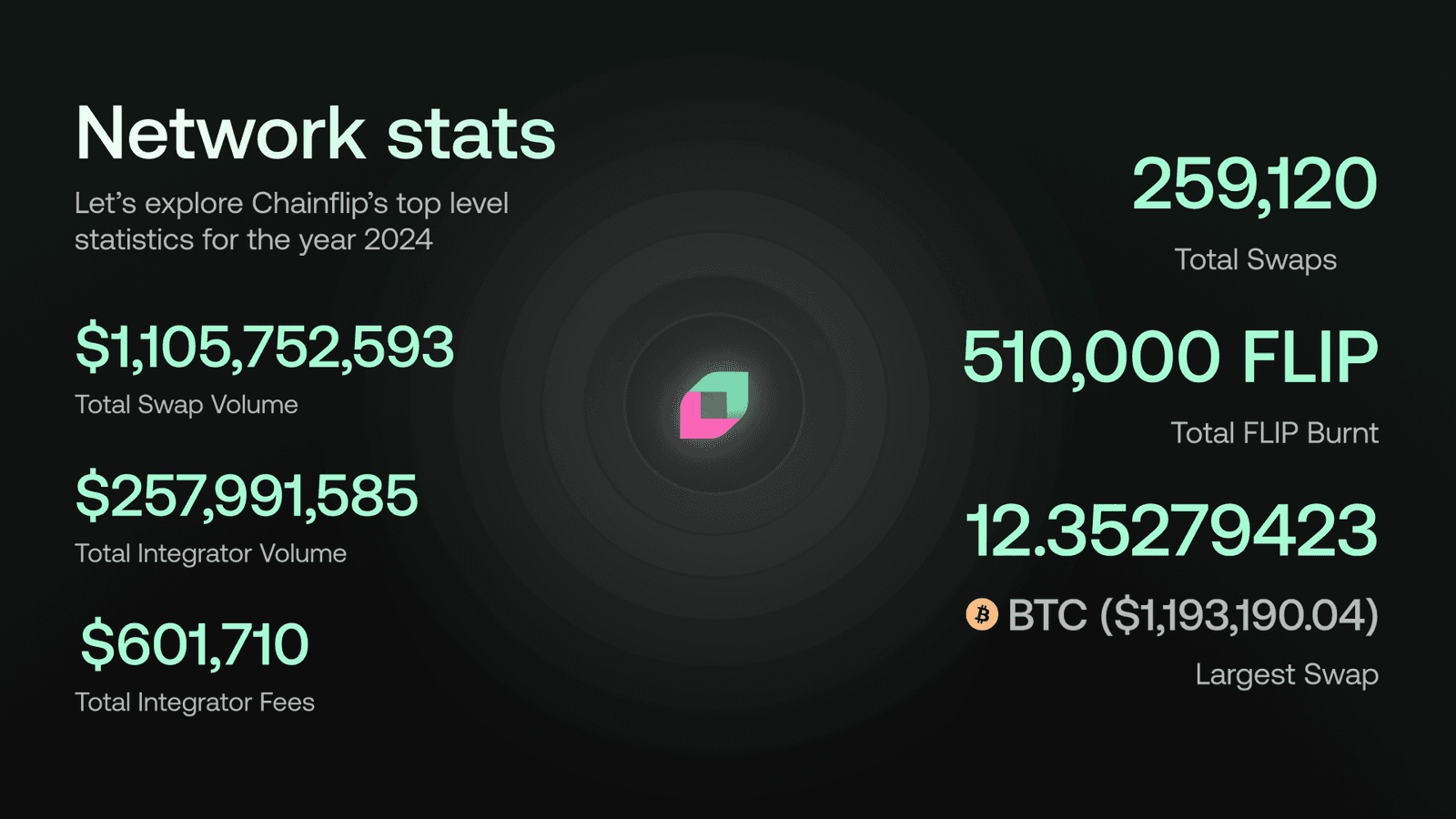 One of the biggest highlights was the addition of Solana as a native asset, making Chainflip the first protocol to enable native SOL <>BTC swaps—giving us a significant edge in the market. While our Chainflip Wrapped 2024 report focused on the features added throughout the year, this report dives into the numbers to highlight the growth behind these milestones. For more details, check out our blog. Now, let’s look at the figures that showcase Chainflip’s impressive progress.