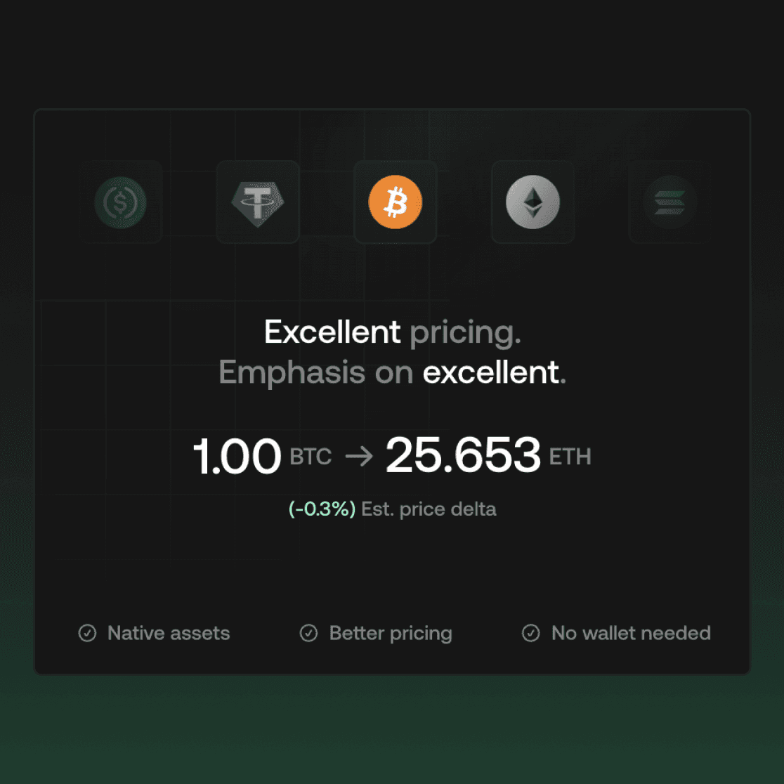 Our mission is simple: becoming the most cost-effective way to swap across ecosystems natively while hiding the complexity from users.