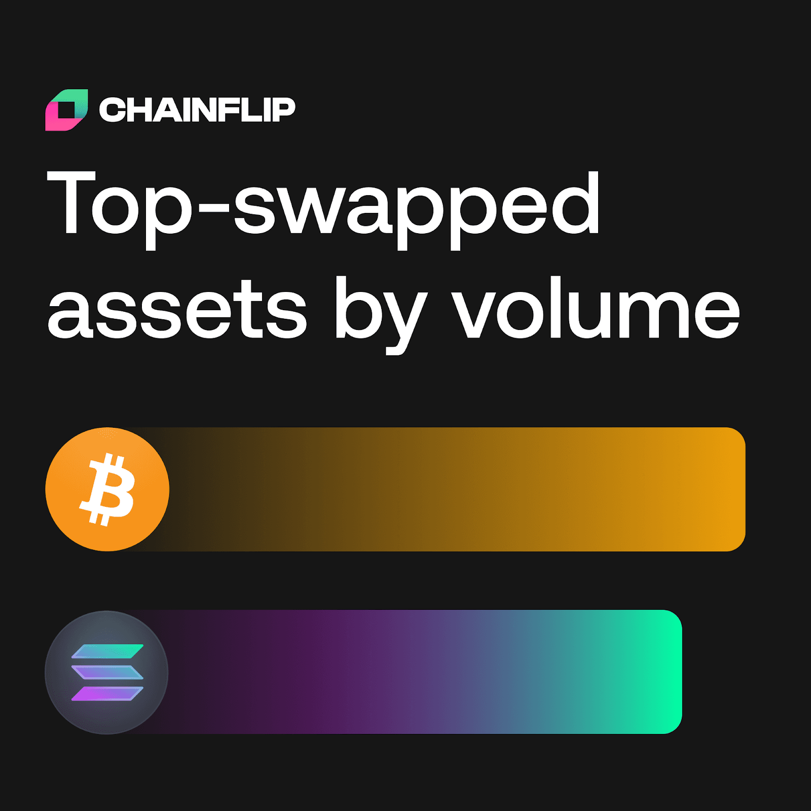 Bitcoin remains the top-swapped asset on Chainflip, but Solana is closing the gap fast. This isn’t surprising, given that we remain one of the few protocols offering seamless routes to and from Solana.
