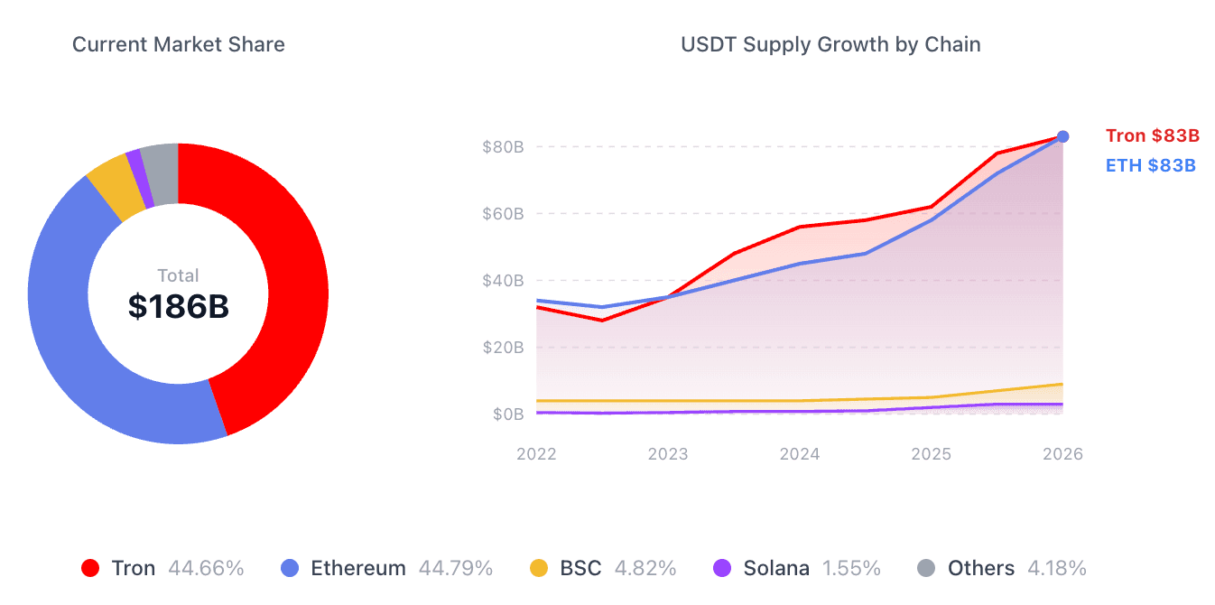 Tron rivals Ethereum as the dominant USDT settlement layer
