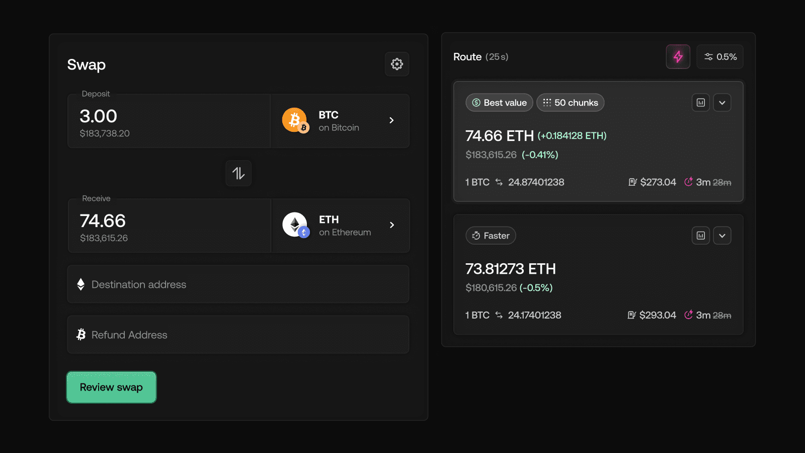 In some cases, not all chunks may be executed within the desired parameters. Here’s how a partial refund works when some swaps fail to meet the minimum price requirements.