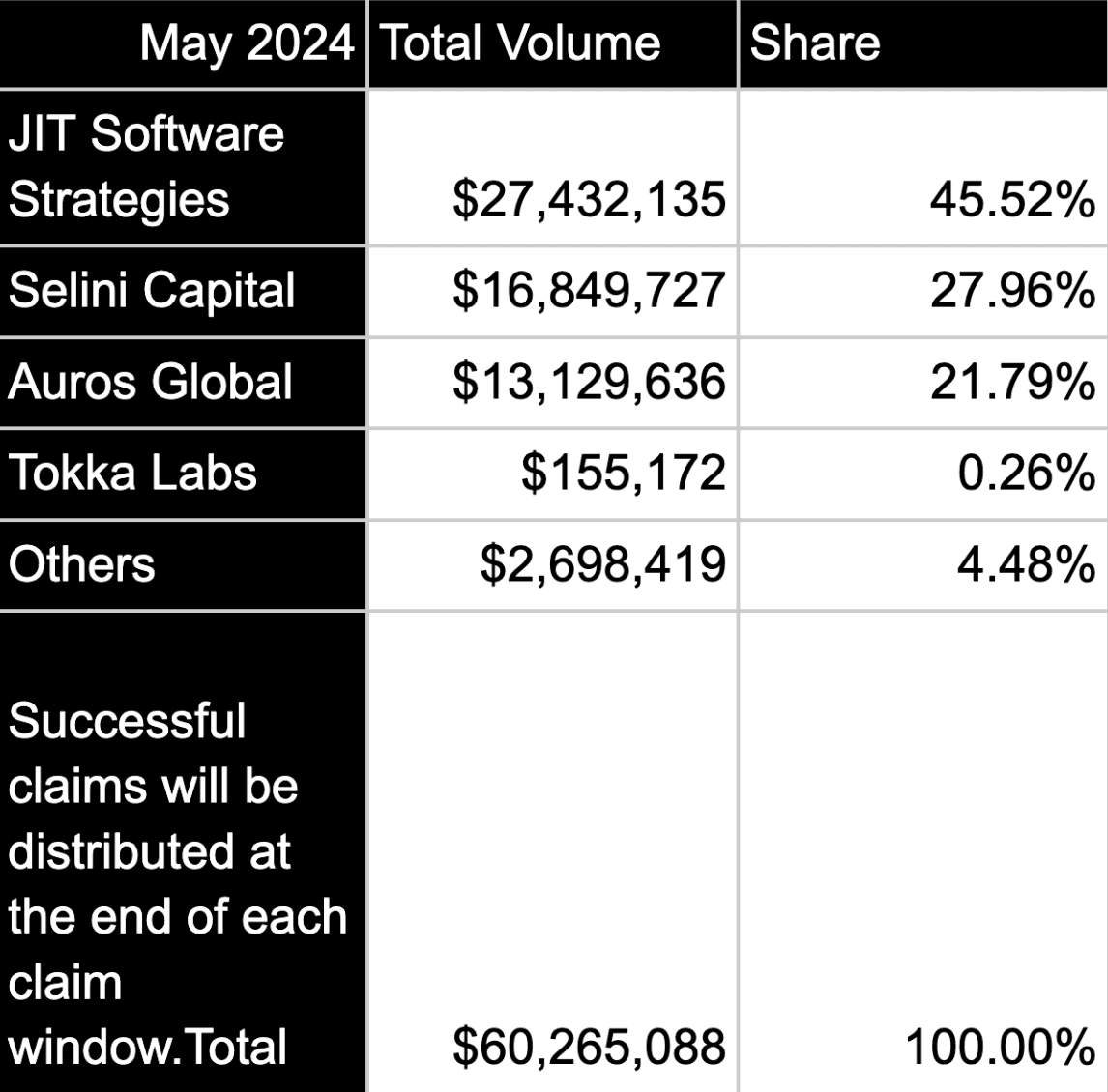 Any LP with more than $1000 USD of fill volume will be entitled to make a claim before June 15th.