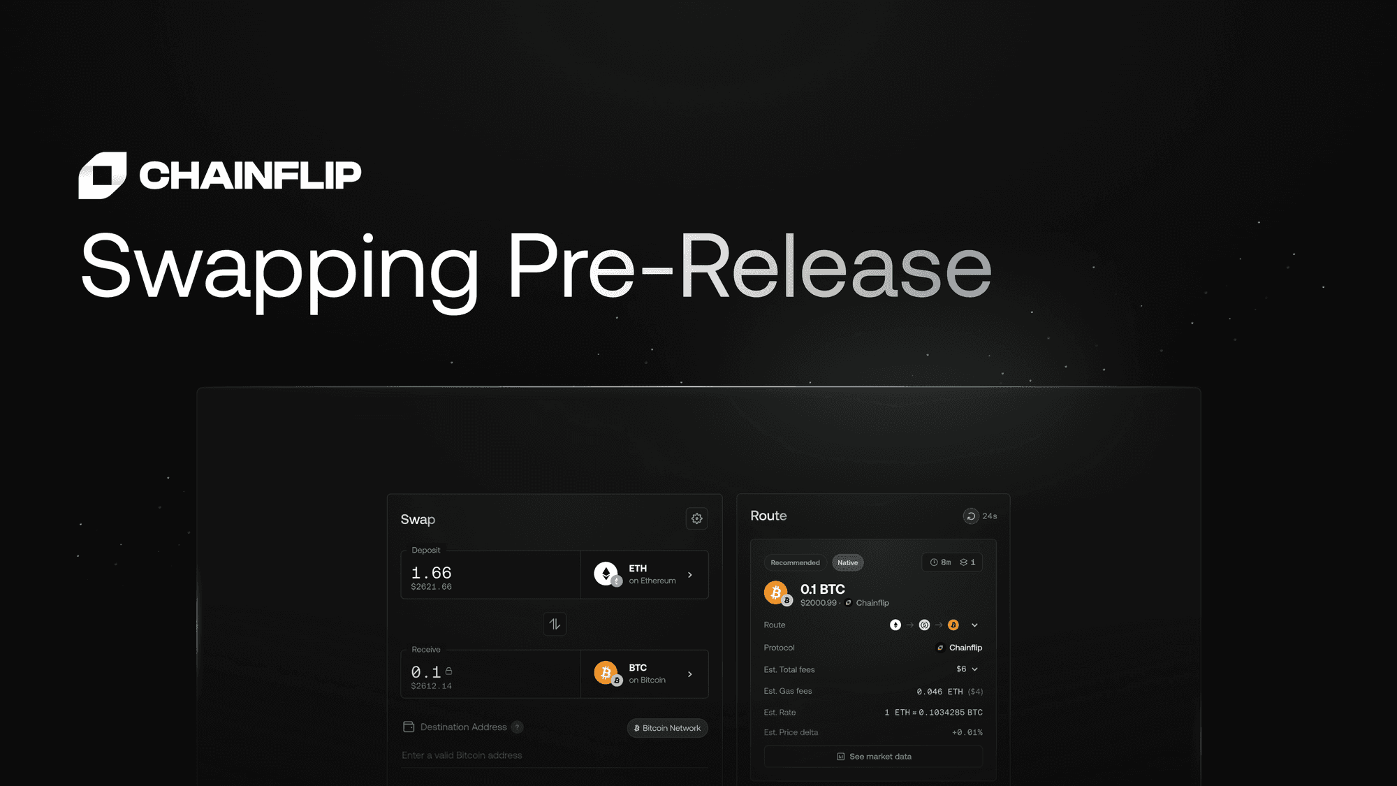 We are very pleased to announce the rollout plan for the swapping capabilities of the Chainflip mainnet. Beginning in the coming hours, we will be commencing a pre-release of swapping, which is a major step in the network's history.