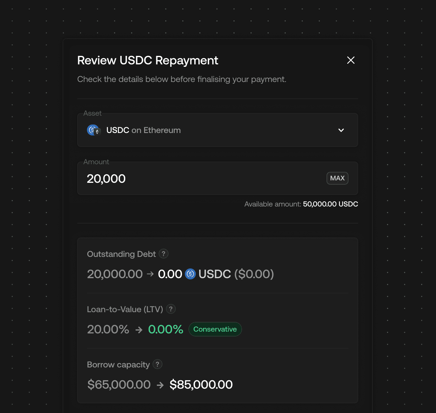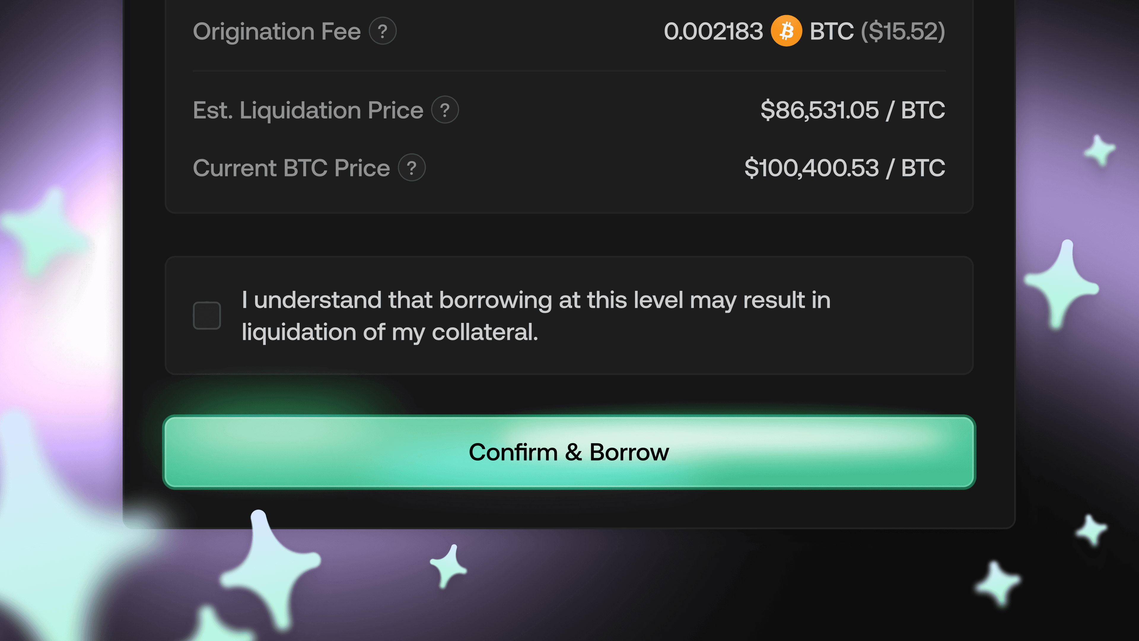 Yes. By keeping an eye on your loan-to-value (LTV) ratio and adding more collateral when markets move, you can stay safely above liquidation levels. The app shows your LTV in real time, helping you manage risk and maintain healthy positions even during volatile markets.