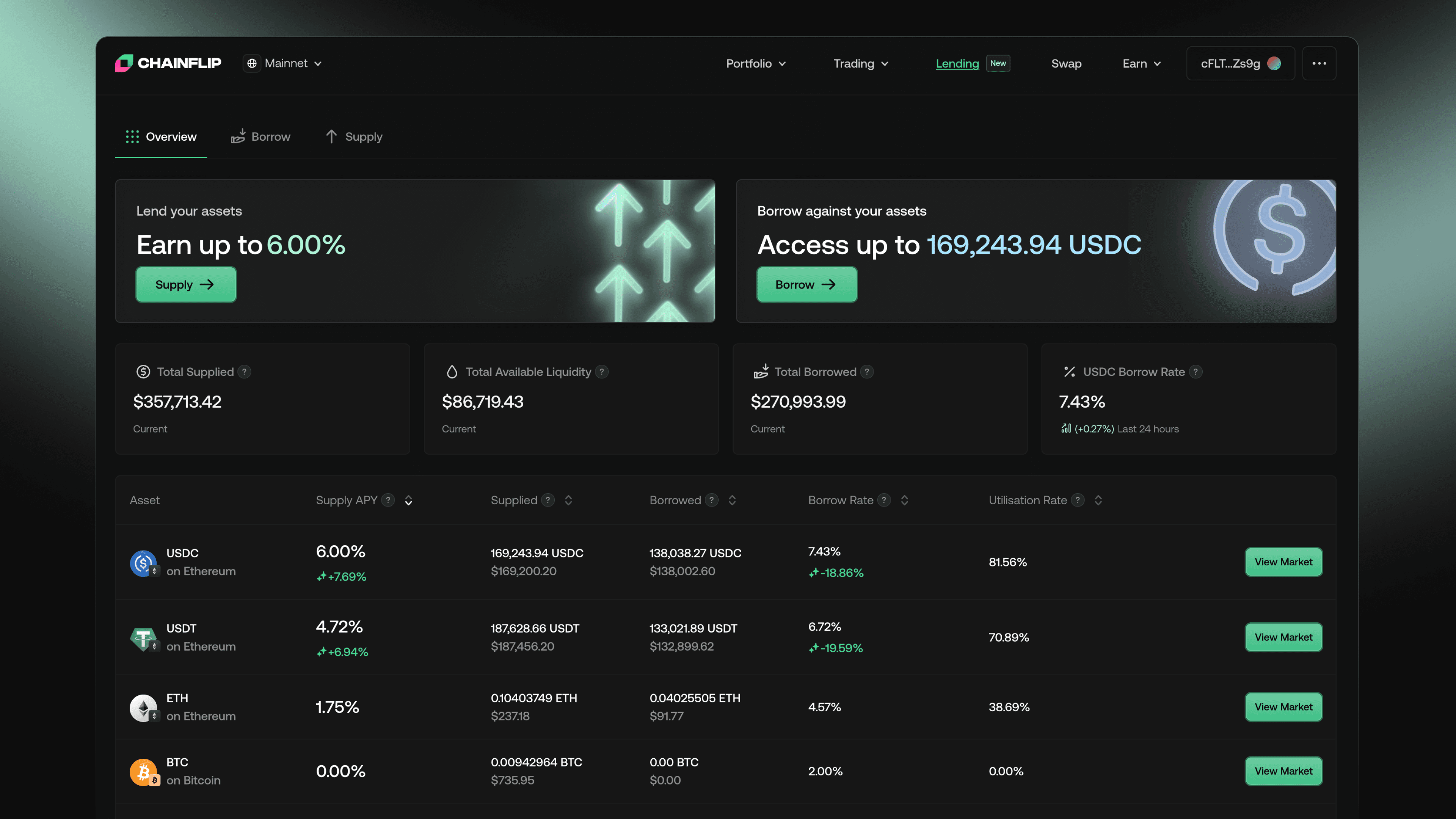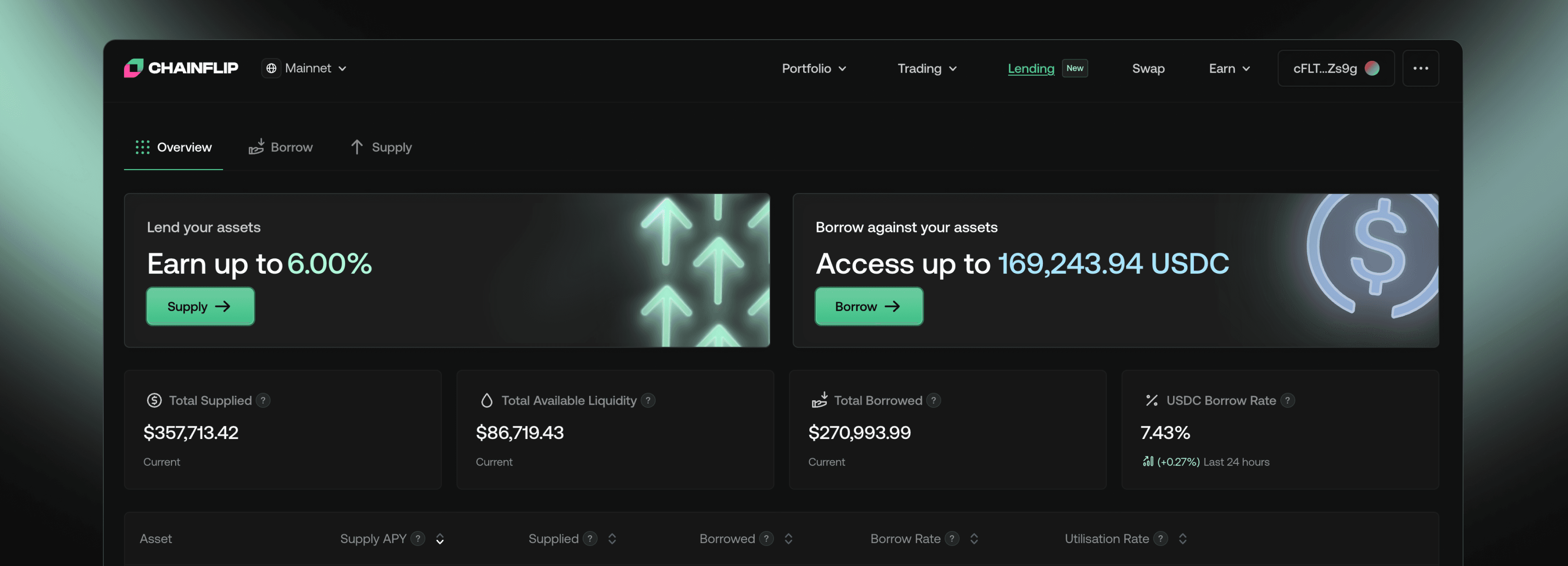 Lend and borrow BTC, ETH, SOL, and more. Built directly on Chainflip’s proven DEX infrastructure.